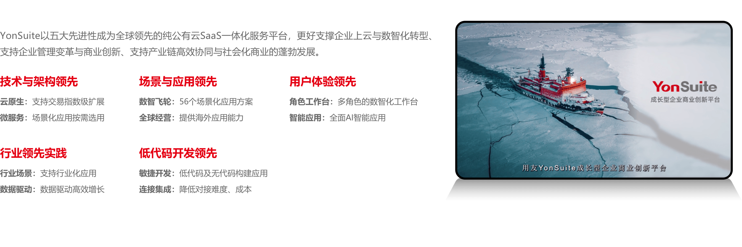 用友BP采用新一代信息技术,提供了云原生(含微服务)、元数据驱动、中台化和数用分离的平台能力,涵盖平台服务、应用服务、业务服务与数据服务等形态,集工具、能力和资源服务为一体,提供服务企业与产业商业创新的云服务。